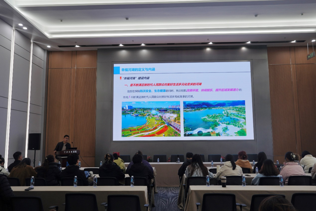 我院規(guī)劃院綜合與市場發(fā)展部主任胡劍以“新時期幸福河湖建設(shè)思路及典型案例”為主題,結(jié)合生動案例,深入解讀"幸福河湖"的豐富內(nèi)涵:安全、生態(tài)、宜居、智慧、文化,是按照“全域推進(jìn)、重點打造”的總體思路,“點、線、面”開展多元化精品示范建設(shè),構(gòu)建全域幸福格局,展現(xiàn)人水和諧的寧波實踐。